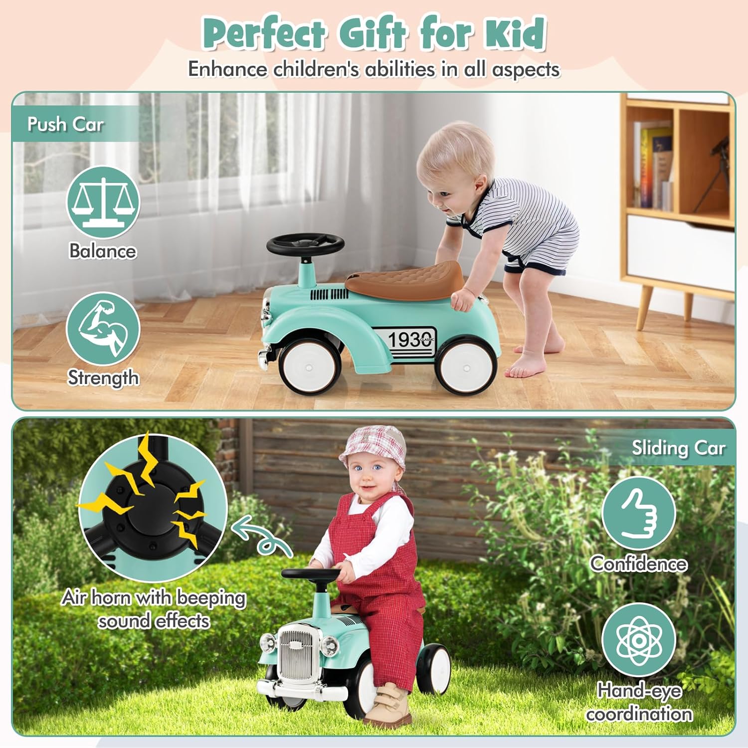 🧠 Supports Early Development – Encourages motor skill development, balance, coordination, leg strength, and growing independence
