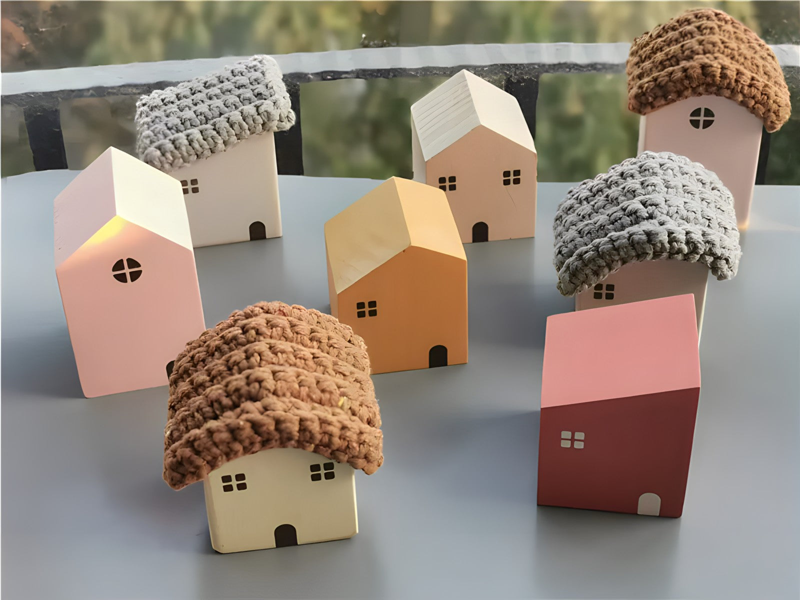 🏡 Creative Play Haven: The pastel Nordic building blocks and crochet house create a whimsical world where kids can build, stack, and explore their creativity