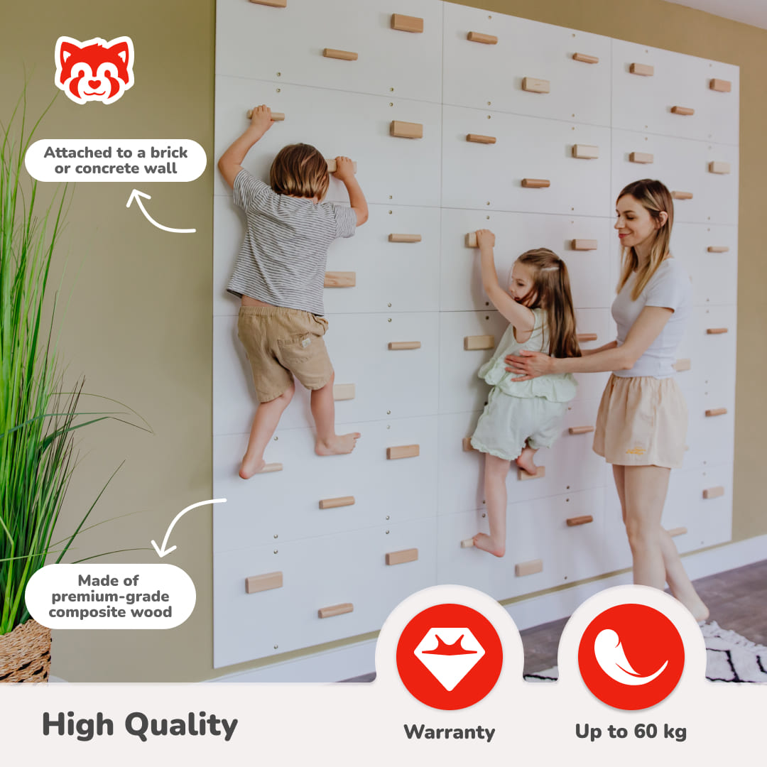 🪵 Premium Materials – Wall panels are crafted from durable composite wood, paired with solid beech wood climbing holds for a smooth, sturdy grip