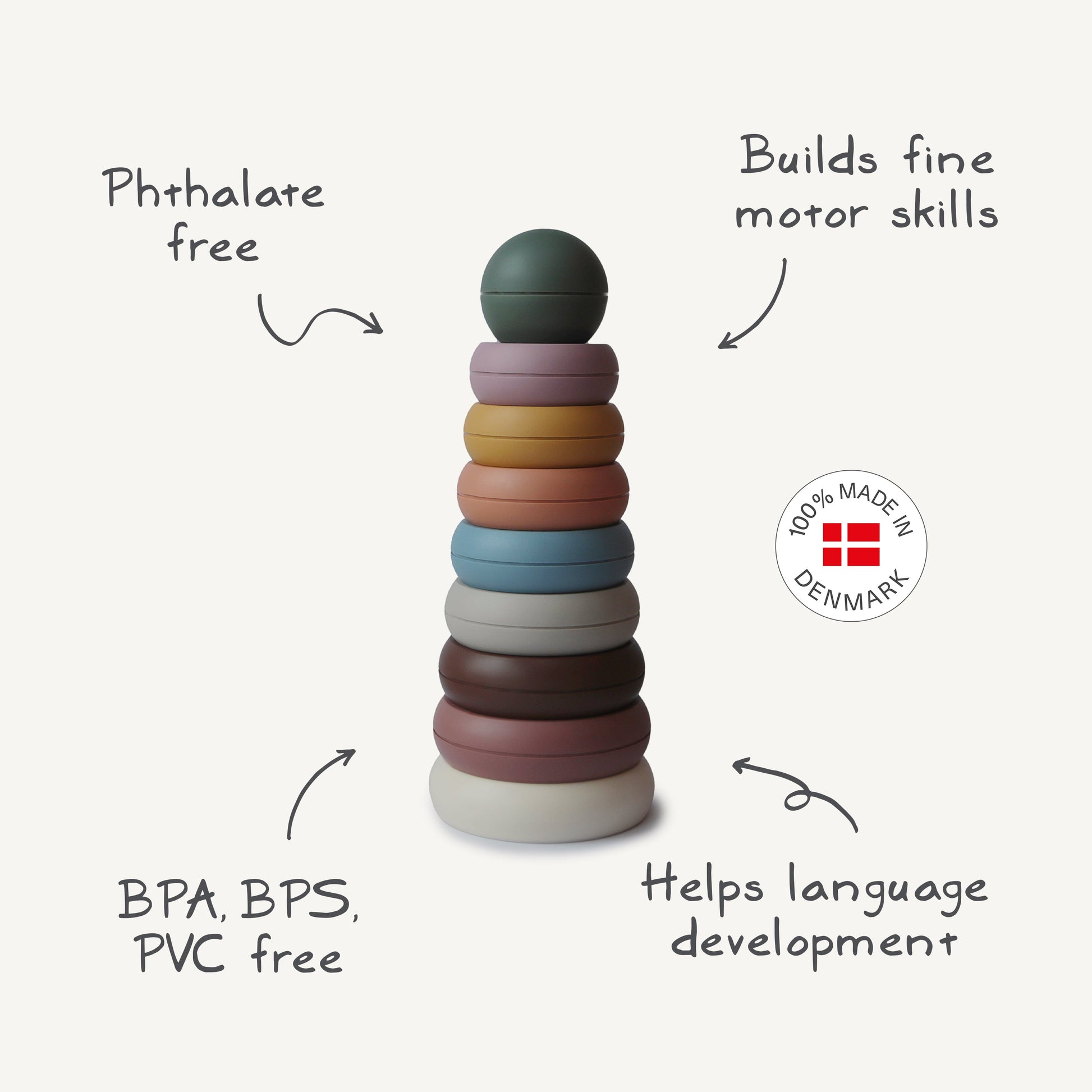 ⭕ Hygge Stacking Rings – A beautifully designed classic toy that supports early motor development and hands-on exploration